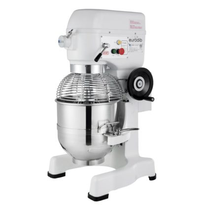 The Eurodib M30ETL planetary mixer is great for emulsifying, kneading, and mixing at three speed settings. It is ideal for mixing cake batter, making frosting, or whipping egg whites. The mixer’s bowl, hook, beater, and whip are made of stainless steel for durability and high-volume use. These parts, along with the cast aluminum mixer, are easy to clean after use. This unit is not intended for use with pizza or bread dough and must be turned off before changing speeds.