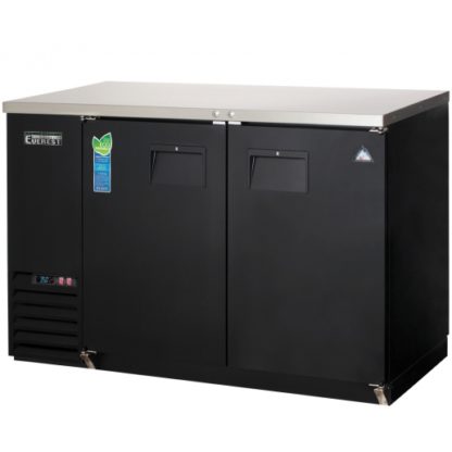The EBB48-24 is a 49″ wide, 24-1/2″ deep, two-section insulated back bar cooler refrigerator from Everest Refrigeration. This unit is equipped with a stainless steel countertop as well as a textured and laminated black vinyl exterior. This back bar cooler refrigerator has the capacity for up to (420) 12 oz. cans or (294) 12 oz. bottles in 13 cubic feet of space.