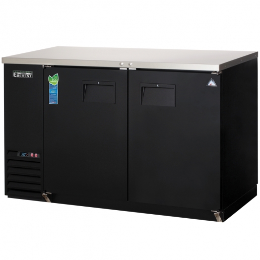 The EBB48 is a 49″ wide, two-section insulated back bar cooler refrigerator from Everest Refrigeration. This unit is equipped with a stainless steel countertop as well as a textured and laminated black vinyl exterior. This back bar cooler refrigerator has the capacity for up to (490) 12 oz. cans or (344) 12 oz. bottles in 14 cubic feet of space.