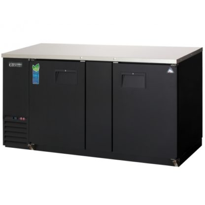 The EBB69-24 is a 68″ wide, 24-1/2″ deep, two-section insulated back bar cooler refrigerator from Everest Refrigeration. This unit is equipped with a stainless steel countertop as well as a textured and laminated black vinyl exterior. This back bar cooler refrigerator has the capacity for up to (700) 12 oz. cans or (441) 12 oz. bottles in 20 cubic feet of space.