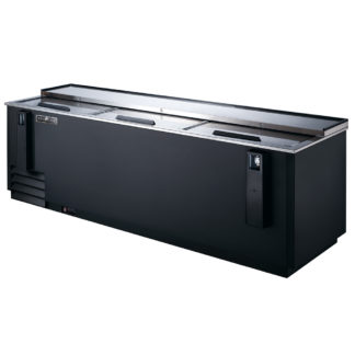 A forced-air cooling system in this bottle cooler with an oversized condenser and evaporator fans provide balanced airflow throughout the cabinet for a faster temperature drop. The refrigeration system on this bottle cooler uses environmentally friendly R290 refrigerant. This unit has 1-3/4″ thick, high density foamed-in-place polyurethane insulation.