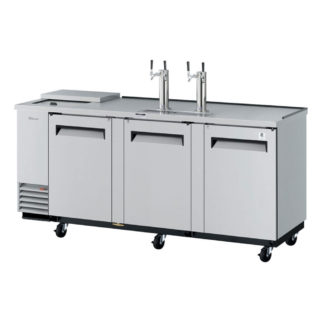 There are 2 doors with locks, 2 epoxy coated wire shelves and shielded LED lighting inside this back bar and direct draw keg refrigerator combo. There’s also a galvanized steel interior wall and stainless steel floor equipped in this unit.