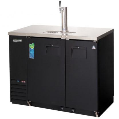 The EBDS2-BB-24 is a 49″ wide, 24-1/2″ deep, two-section insulated back bar and direct draw keg refrigerator combo from Everest Refrigeration. This unit is outfitted with a stainless steel countertop as well as a textured and laminated black vinyl exterior. There is 1 NSF approved 3″ diameter insulated stainless steel draft arm with an air distributor and has the capacity for (1) 1/2 barrel and up to (175) 12 oz. cans or (126) 12 oz. bottles in 13 cubic feet of space.