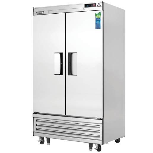 The EBNR2 is a 39-3/8″ wide, two-section stainless steel insulated upright reach-in refrigerator from Everest Refrigeration with 2 narrow full-size self-closing and field reversible doors and shatterproof LED interior lighting. This refrigerator has a stainless steel interior and exterior, a digital control system, 6 shelves and 33 cubic feet of space.