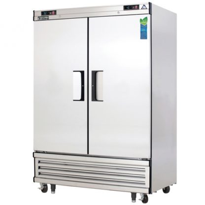 The EBRF2 is a 54-1/8″ wide, two-section stainless steel insulated reach-in dual temp refrigerator/freezer combo from Everest Refrigeration with 2 full-size self-closing and field reversible doors and shatterproof LED interior lighting. This refrigerator/freezer combo has a stainless steel interior and exterior, a digital control system, and 24 cubic feet of space in both the refrigerator and freezer section with 3 shelves per section.