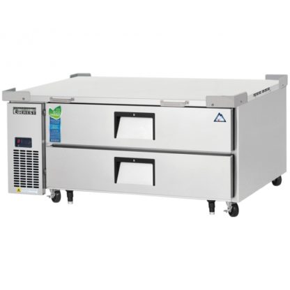 The ECB52D2 is a 51-7/8″ wide, stainless steel insulated one-section chef base refrigerator from Everest Refrigeration. This unit is equipped with a stainless steel interior and exterior with a galvanized steel finished bottom and back exterior wall. There are 2 insulated drawers on this chef base refrigerator which have the capacity for (6) full size pans.