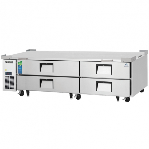 The ECB82-84D4 is a 84″ wide, stainless steel insulated two-section chef base refrigerator from Everest Refrigeration. This unit is equipped with a stainless steel interior and exterior with a galvanized steel finished bottom and back exterior wall. There are 4 insulated drawers on this chef base refrigerator with the capacity for (10) full size pans.