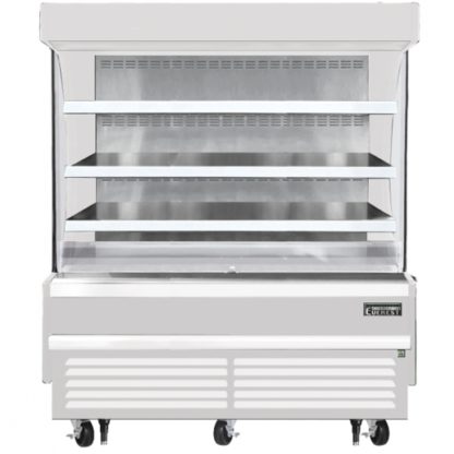 The EOMV-60-W-28-S is a 60″ wide, insulated vertical open air refrigerated merchandiser from Everest Refrigeration with a bottom mounted, self-contained refrigeration system and 15.4 cubic feet of space. The walls of this insulated vertical open air refrigerated merchandiser are insulated with 2.5″ thick high density polyurethane insulation.