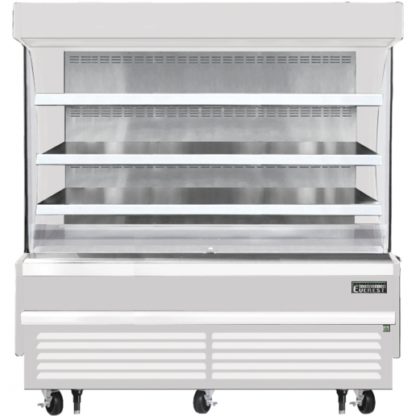 The EOMV-72-W-28-S is a 73-1/4″ wide, insulated vertical open air refrigerated merchandiser from Everest Refrigeration with a bottom mounted, self-contained refrigeration system and 19 cubic feet of space. The walls of this insulated vertical open air refrigerated merchandiser are insulated with 2.5″ thick high density polyurethane insulation.