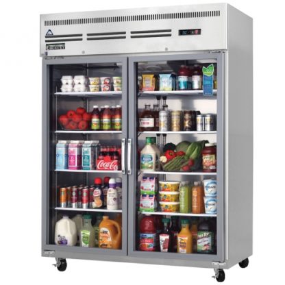 The ESGWR2 is a 59″ wide, two-section stainless steel insulated reach-in glass swing door refrigerator from Everest Refrigeration with 2 wide low emissivity double pane glass swing doors and shielded LED interior lighting. This refrigerator has a stainless steel interior and exterior, digital control system, 8 shelves and 55 cubic feet of space.