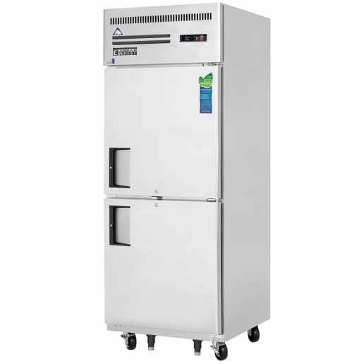 The ESRH2 is a 29-1/4″ wide, one-section stainless steel insulated upright reach-in refrigerator from Everest Refrigeration with 2 half-size self-closing and field reversible doors and shatterproof LED interior lighting. This refrigerator has a stainless steel interior and exterior, a digital control system, 3 shelves and 23 cubic feet of space.