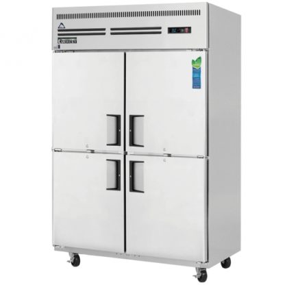 The ESRH4 is a 49-5/8″ wide, two-section stainless steel insulated upright reach-in refrigerator from Everest Refrigeration with 4 half-size self-closing and field reversible doors and shatterproof LED interior lighting. This refrigerator has a stainless steel interior and exterior, a digital control system, 6 shelves and 48 cubic feet of space.