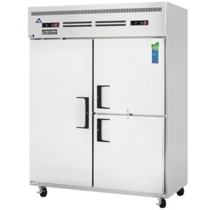 The ESWQ3 is a 59″ wide, two-section stainless steel insulated reach-in dual temp refrigerator/freezer combo from Everest Refrigeration with 1 full and 2 half-size self-closing and field reversible doors and shatterproof LED interior lighting. This refrigerator/freezer combo has a stainless steel interior and exterior, a digital control system and 39 cubic feet of space in the refrigerator sections with 13 cubic feet of space in the freezer section.