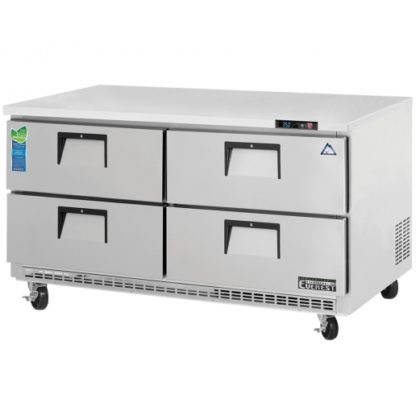 The ETBWR2-D4 is a 59-1/4″ wide, stainless steel insulated two-section back mount undercounter worktop refrigerator from Everest Refrigeration with 4 drawers. This refrigerator has a stainless steel interior and exterior with 18 cubic feet of space.