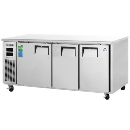 The ETRF3 is a 71-1/8″ wide, stainless steel insulated three-section side mount undercounter worktop dual temp refrigerator/freezer combo from Everest Refrigeration with 3 adjustable self-closing doors. This dual temp refrigerator/freezer combo has a stainless steel interior and exterior, a digital control system, 14 cubic feet of space in the refrigerator sections and 9 cubic feet of space in the freezer section.