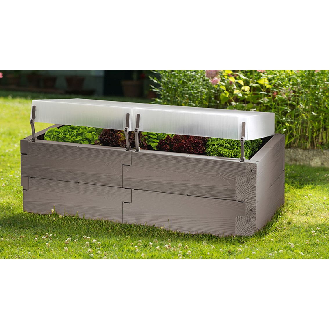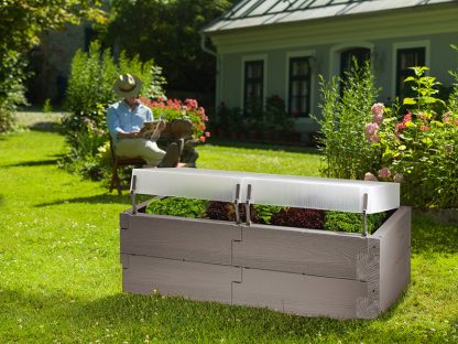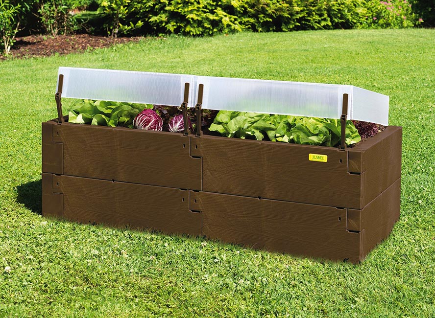 Combining a modern high-quality wood look with weather resistance and durability, this raised bed is made of environmentally friendly plastic. It is BPA free, heavy-metal free and 100% recyclable/ The injection molded bricks easily join together to form a stable raised bed. Unlike wood, there is no painting, splintering or rotting.