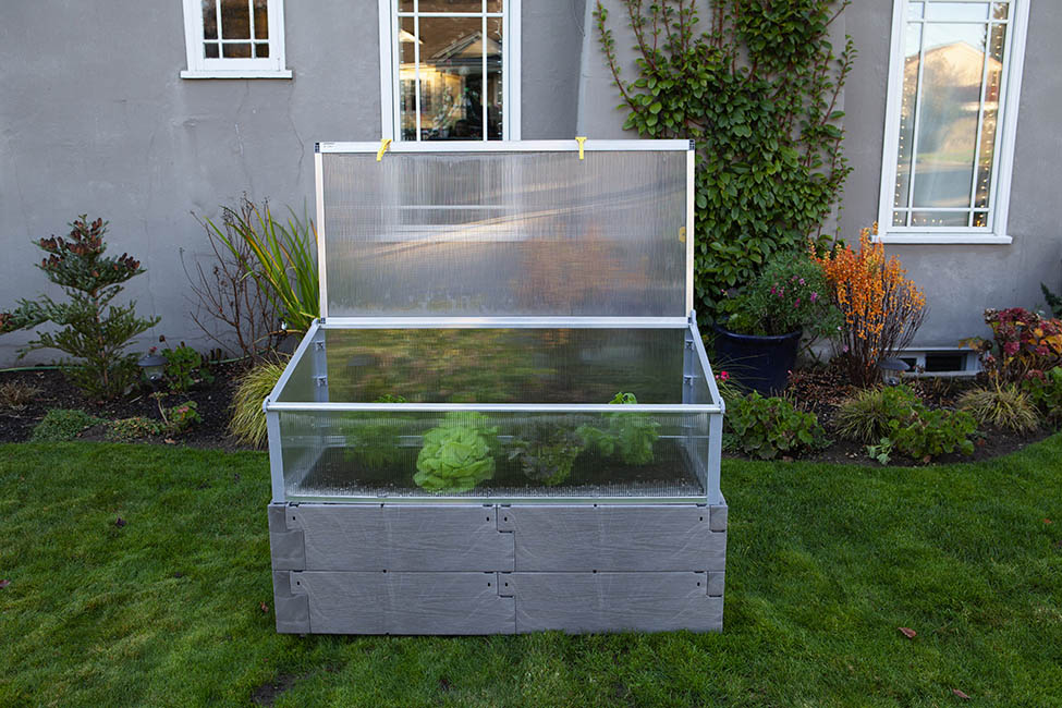 Easily combine sets to create the size and height that works for you. The double-high set includes a free lightweight/light-duty cold cover to be removed in the summer. The Year-Round Cold Frame easily attaches to the top for added protection. You may even combine a double set and a single set to get a triple height set!