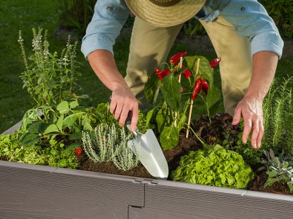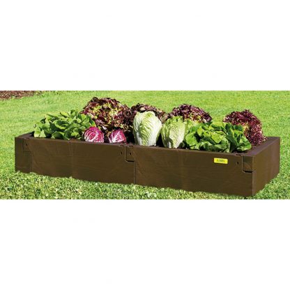 Combining a modern high-quality wood look with weather resistance and durability, this raised bed is made of environmentally friendly plastic. It is BPA free, heavy-metal free and 100% recyclable/ The injection molded bricks easily join together to form a stable raised bed. Unlike wood, there is no painting, splintering or rotting.
