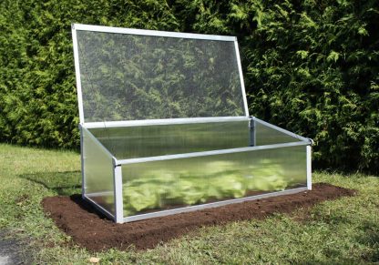 The Year Round Cold Frame is a great choice for someone who wants to grow plants but does not have space for a complete greenhouse. The Year Round Cold Frame features thick 4mm polycarbonate and aluminum frame construction, and includes both a poly cover and insect netting cover, so that the unit can be used throughout the year.