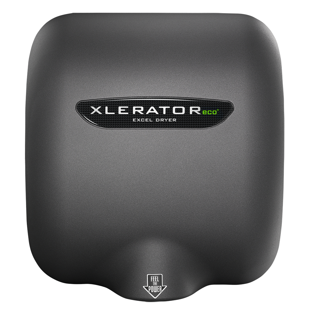 The high-speed, energy-efficient Excel XL-GR-ECO XLERATOReco® graphite textured cover energy efficient no heat hand dryer uses no heat technology to dry hands quickly in about 10 seconds so your customers can be on their way. It operates on only 500 watts making it one of the top energy-efficient hand dryers on the market. It has a low draw of amps allowing it to be installed on one 20 amp circuit, which significantly reduces installation time and costs. Its simple mounting system makes it easy to install on any wall in your bathroom, and its attractive graphite exterior fits in with any restroom’s decor.