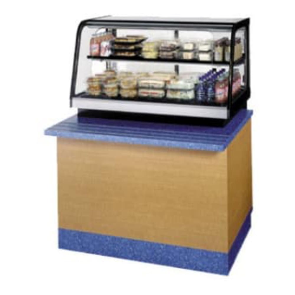 Counter Top Refrigerated Self-Serve Rear Mount Merchandiser, 48″W x 30″D x 37.7″H, self contained refrigeration with condensate evaporator, adjustable temperature control, tempered front glass with self-serve cut out, 3500K LED top light with lighted shelf, adjustable black metal shelf, removable black display deck, black painted metal & stainless construction with black trim, removable sliding glass rear doors, clear end panels, set directly on counter, cord & plug, cULus, UL EPH Classified, Made In USA, DOE 2017 compliant