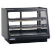 Elements Counter Top Self-Serve Refrigerated Rear Mount Merchandiser, 48″W x 29.7″D x 37.7″H, self contained refrigeration with condensate evaporator, adjustable temperature control, (3) hinged lift-up front doors, 3500K LED top light & lighted shelves, (2) tiers of adjustable black wire shelves, black display deck, black trim, removable sliding glass rear doors, solid end panels, set directly on counter, 1/3 HP, 120v/60/1-ph electrical, cord & plug, cULus, UL EPH Classified, Made In USA, DOE 2017 Compliant