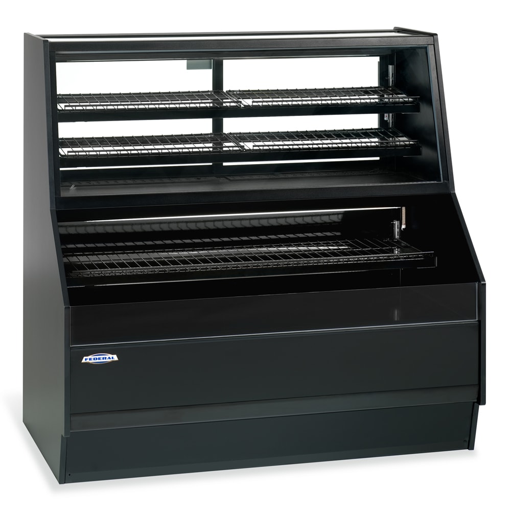 Elements Convertible Merchandiser With Refrigerated Self-Serve Bottom & Convertible Top, 77″W x 34″D x 52″H, refrigerated self-serve bottom: black exterior, 3500K LED horizontal & top light, (2) tier black display step, black interior, Convertible Refrigerated or non-refrigerated top: tempered thermopane front glass, baffle system to convert from non-refrigerated to refrigerated, rear glass sliding doors, top light with lighted shelf, adjustable black wire shelf, 3/4 HP, 230v/60hz/1ph electrical, cord & plug, cULus, UL EPH Classified, Made In USA, DOE 2017 Compliant