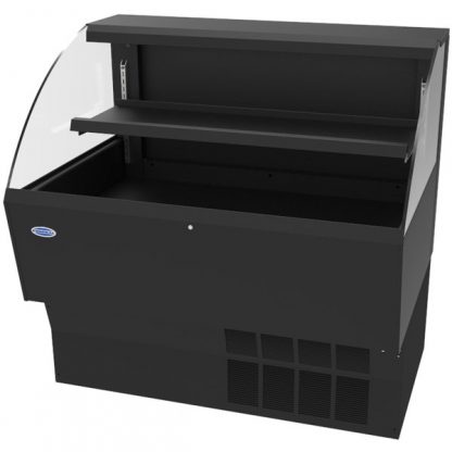 Designed with impulse sales in mind, this Federal Industries ELPRSS-4 Elements black 47″ low profile air curtain merchandiser is the perfect addition to your commercial facility! Great for displaying pre-made sandwiches, salads, bottled beverages, and other grab-and-go snacks, this merchandiser combines reliability with aesthetic appeal to encourage customers to buy your items! The 46″ tall, low profile design allows this unit to fit virtually anywhere, and because it features a bright top light, it will illuminate your products while drawing customer attention. An adjustable shelf allows you to customize the configuration of the interior to suit whichever items you are displaying, and thanks to black steel base with a powder-coated finish, you’re guaranteed a high-quality unit that withstands the hustle and bustle of a commercial environment.