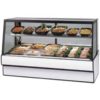 High Volume Refrigerated Deli Case, 77-1/8″W x 35-5/16″D x 48″H, self contained refrigeration with condensate evaporator, adjustable temperature control, sloped thermopane tilt-front glass, LED top light &lighted shelf, adjustable stainless steel mezzanine shelf, glass sliding rear doors, white interior, tempered glass ends, removable rear wrapping board, black laminate, black trim, designed for continuous lineups, 3/4 HP, cULus, UL EPH Classified, Made In USA, DOE 2017 compliant