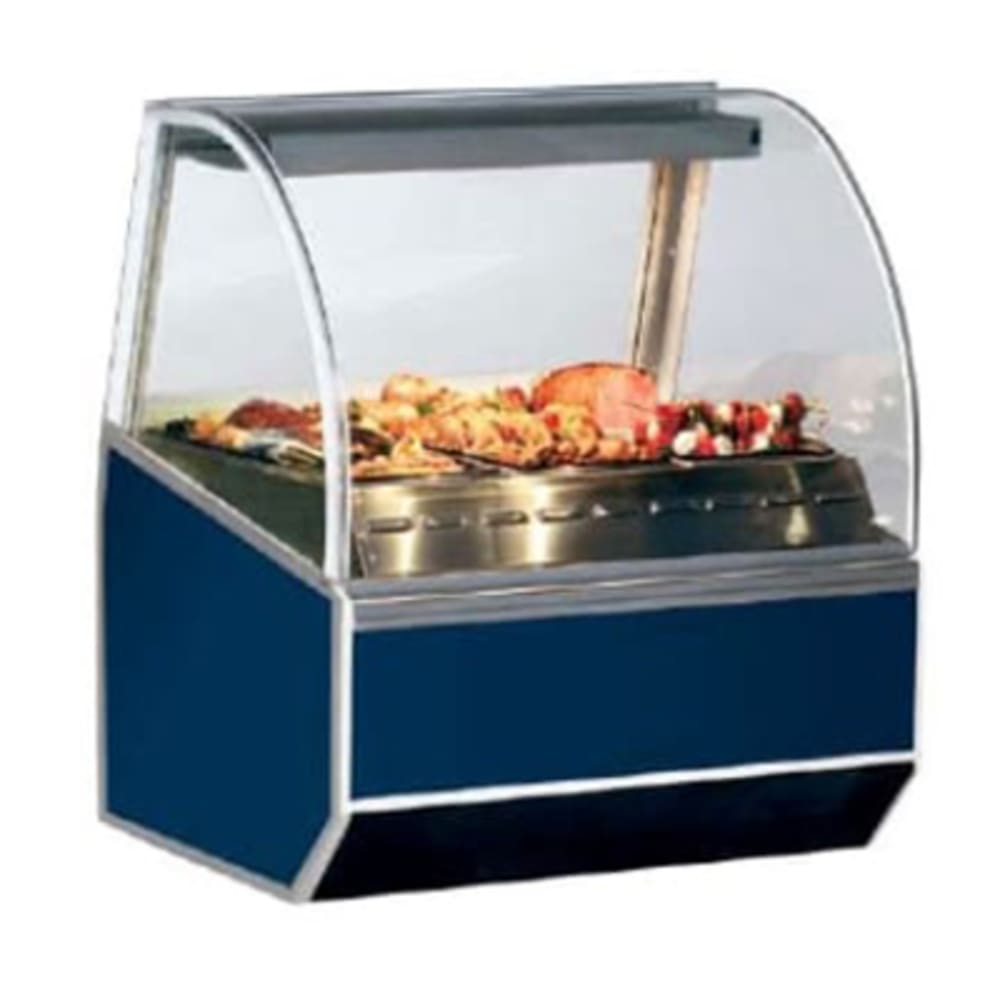Series ’90 Hot Deli Case, 48-1/4″W x 37-3/4″D x 48-1/2″H, wet or dry heat, (3) wells, independently controllable one-piece stainless steel heating wells each with a calrod heating element, top mounted full-length infrared heater, tempered curved lift-up front glass, forced air front glass defogger, top light, removable rear doors with moisture vent panels, one-piece stainless steel interior, tempered glass ends, rear wrapping board, choice of laminate & trim, drain not required, cULus, UL EPH Classified, Made In USA