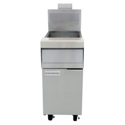 The Frymaster MJ140 floor model fryer has a stainless steel cabinet, door, and frypot for durability. Because the 6-inch-tall legs are adjustable by 1 inch, the unit can remain stable on uneven flooring. Casters are also included so you can easily move the fryer when it is time to clean underneath it. The open-pot design and front-sloping bottom make cleaning out oil and debris simple, while the deep cold zone prevents sediment from reaching the cooking area to lengthen the life of your oil. Two twin baskets are included, and the basket hangers sit over the flue.