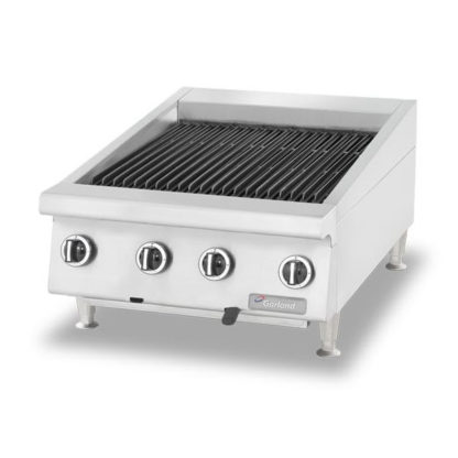 To protect the countertop from burning or the unit itself from overheating, the Garland GTBG24-NR24 charbroiler is mounted on 4-inch legs that can be adjusted if needed. This unit offers protection to the operator as well with a front-located rail, which provides distance between them and the heating elements to reduce burns. For cleaning purposes, it has a crumb tray that catches debris and food particles.