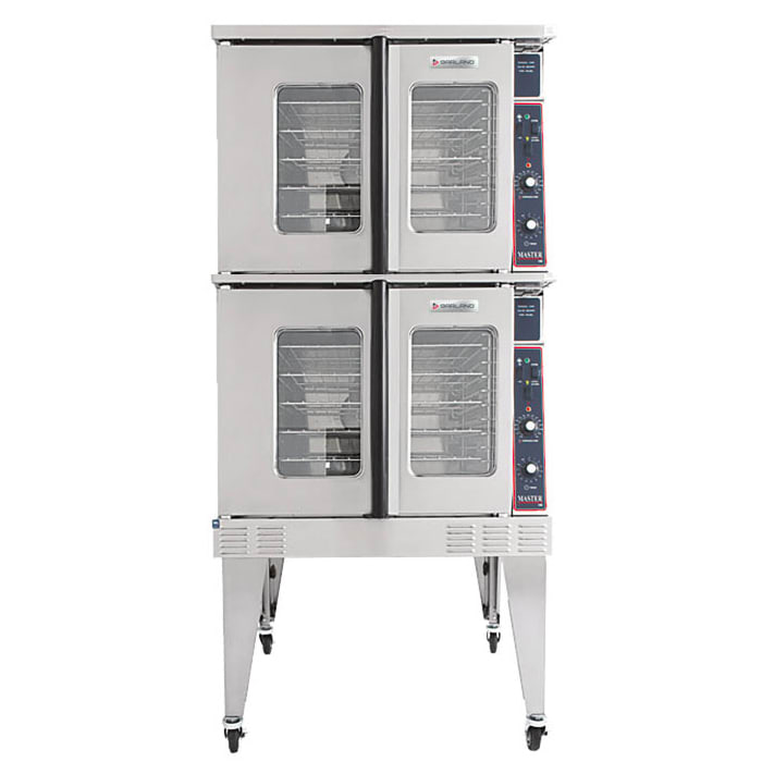 Master Series Convection Oven, electric, half-section, double-deck, Master 200 solid state controller with 1 hour timer, (2) speed fan, porcelain enameled oven cavity, single door with glass, stainless steel front, top & sides, 4″ stainless steel legs, 11.2 kW each (Garland), cUL, NSF