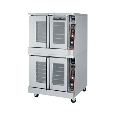 Ideal for increasing productivity in a busy commercial kitchen, the Garland MCO-ED-20 Master Series double convection oven features two stacked ovens. Its controls are straightforward to operate, reducing the time spent training new operators. A fan circulates air in each oven and its speed can be adjusted to handle delicate foods. The dependent doors have windows for cooks to supervise food as it bakes.
