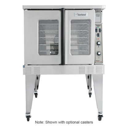 Master Series Convection Oven, single-deck, standard depth 39″, (2) speed fan, Master 200 solid state controls with 1 hour timer, electric ignition, dependent 60/40 doors with windows, stainless steel front, sides & top, porcelain cavity, 24″ cooking cavity height, with (6) chrome plated oven racks on 13-position rack guides, 25-1/2″ legs, EnerLogic Technology, 60,000 BTU (Garland), UL, cUL, NSF