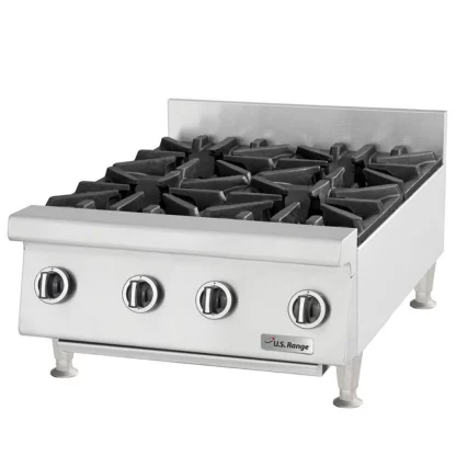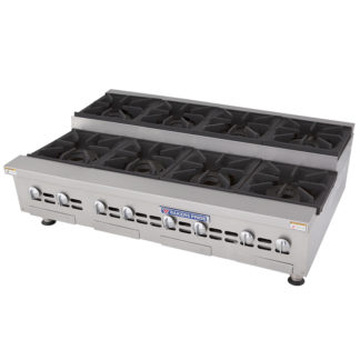 Hotplate, 12″ W, countertop, Heavy-duty, (2) 30,000 BTU Performer Pro open burners, manual controls, pilot lights, stainless steel front, sides and back, 3-1/2″ front rail, 4″ high adjustable legs, 60,000 BTU (US Range), CSA, NSF