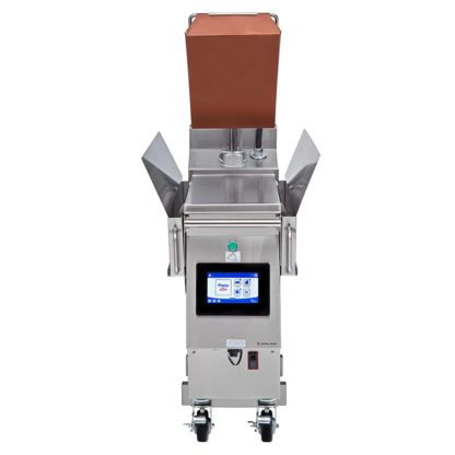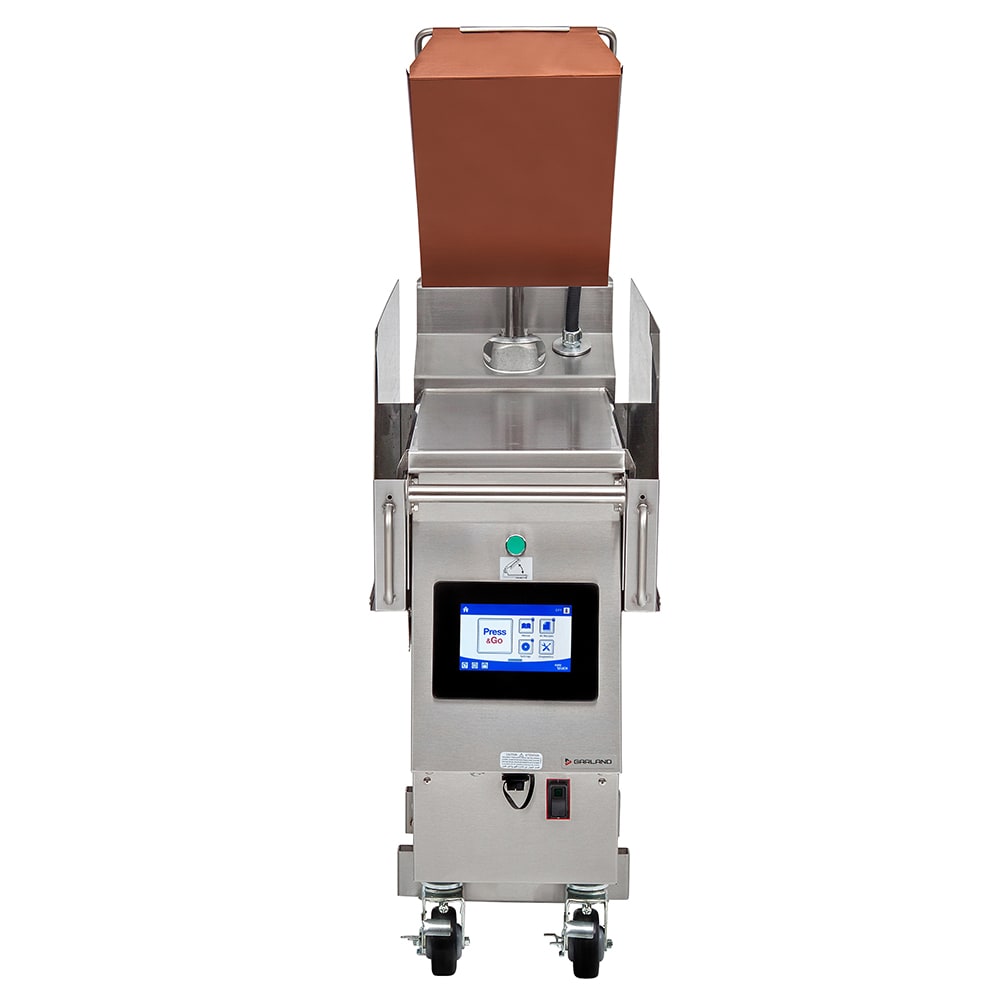 Splash guards encircle splatter messes in the Garland XPE12 clam shell griddle. These guards lead into side-mounted grease pans for food waste collection. The stainless steel sides, front, and top resist dents, scrapes, and corrosion. Programmable controls offer consistent cooking by reducing temperature fluctuations.