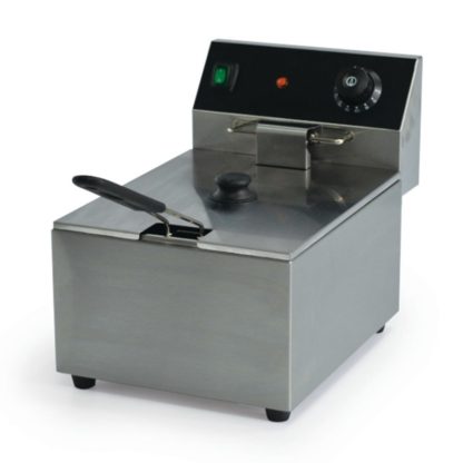 Taking up minimal space on a countertop, the Global Solutions GS1610 electric fryer measures 8.50 inches wide by 15 inches deep by 13 inches high. Because the vat has a capacity of10 pounds of oil, this unit can produce approximately 17 pounds of french fries per hour, making it a great choice for establishments that don’t sell much fried food, such as a cafeteria or small restaurant.
