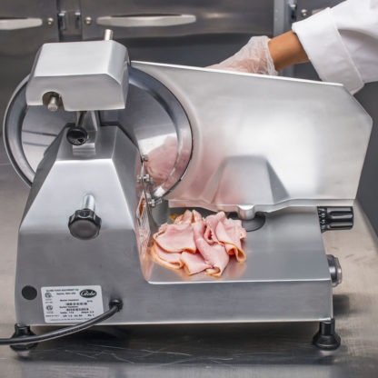 The Globe C10 manual food slicer produces portions of meats and vegetables as thick as 9/16 of an inch. It uses a 10-inch knife, which is the perfect size for light-duty needs. This slicer is recommended for 30 minutes of use daily and shouldn’t be used to slice cheese.