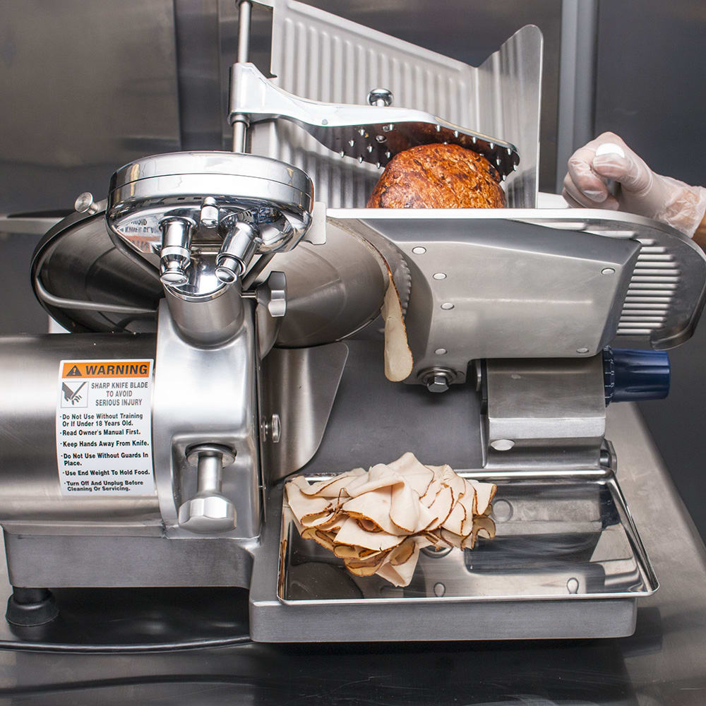 - Gear-driven motor handles higher slicing volume than belt-driven motors