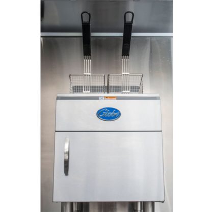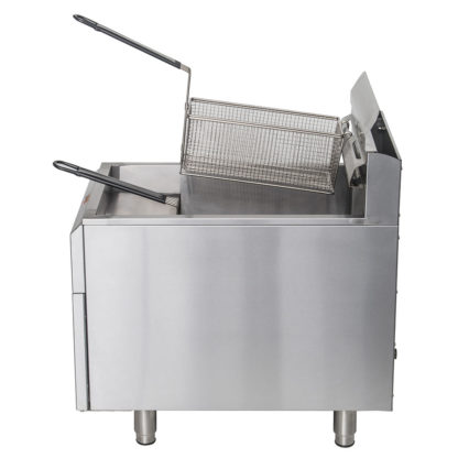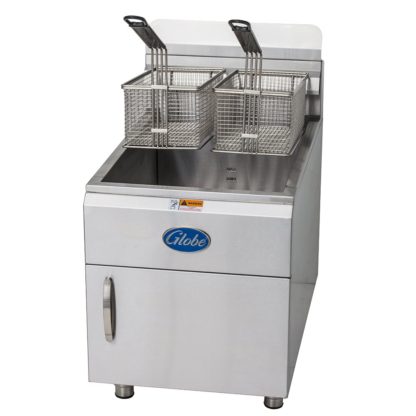 To protect against overheating, the Globe GF30G countertop fryer is designed with a high-limit thermostat protection that’ll shut the unit down if the temperature climbs too high. It comes with two nickel-plated fryer baskets, and each is equipped with an insulated handle that remains comfortably cool to the touch. This unit is powered by natural gas, and its single vat has a capacity of 30 pounds.