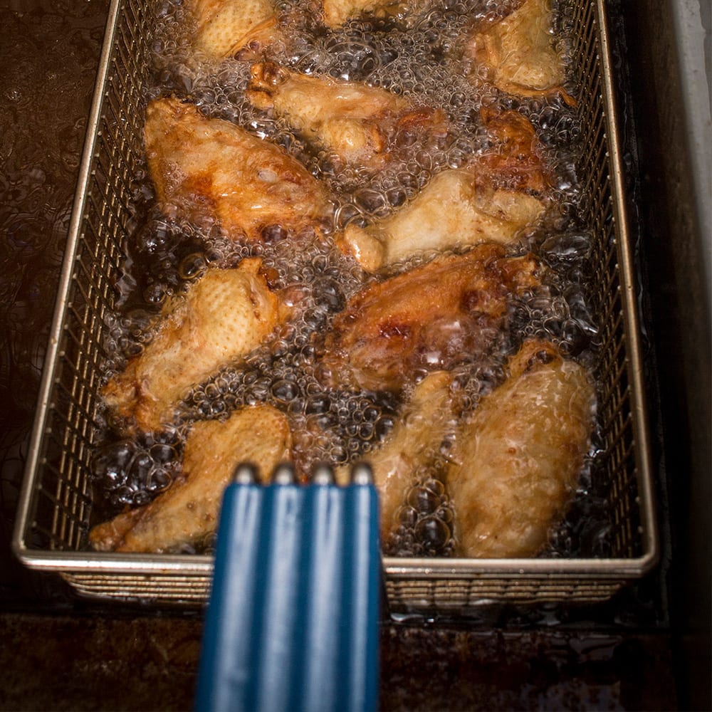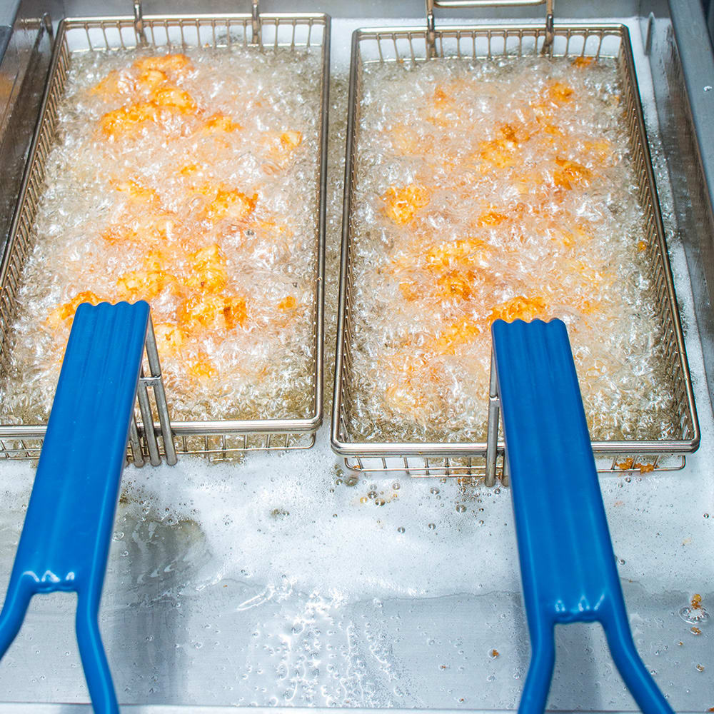 - Stainless steel fry tank is peened with a smooth finish that eliminates crevices where particles can get trapped