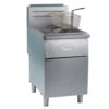 Floor Fryer, liquid propane, 80 lbs. oil capacity, high-limit thermostat with auto gas supply shut off, includes (2) nickel chrome wire mesh baskets, stainless steel fry tank & double rod basket hangers, 1-1/4″ ball-type port drain with extension pipe, stainless steel front and door with integral liner, galvanized sides, 2-1/2″ dia. x 6″ adjustable stainless steel legs (set of (4) casters included), 30,000 BTU per tube, cCSAus, CSA