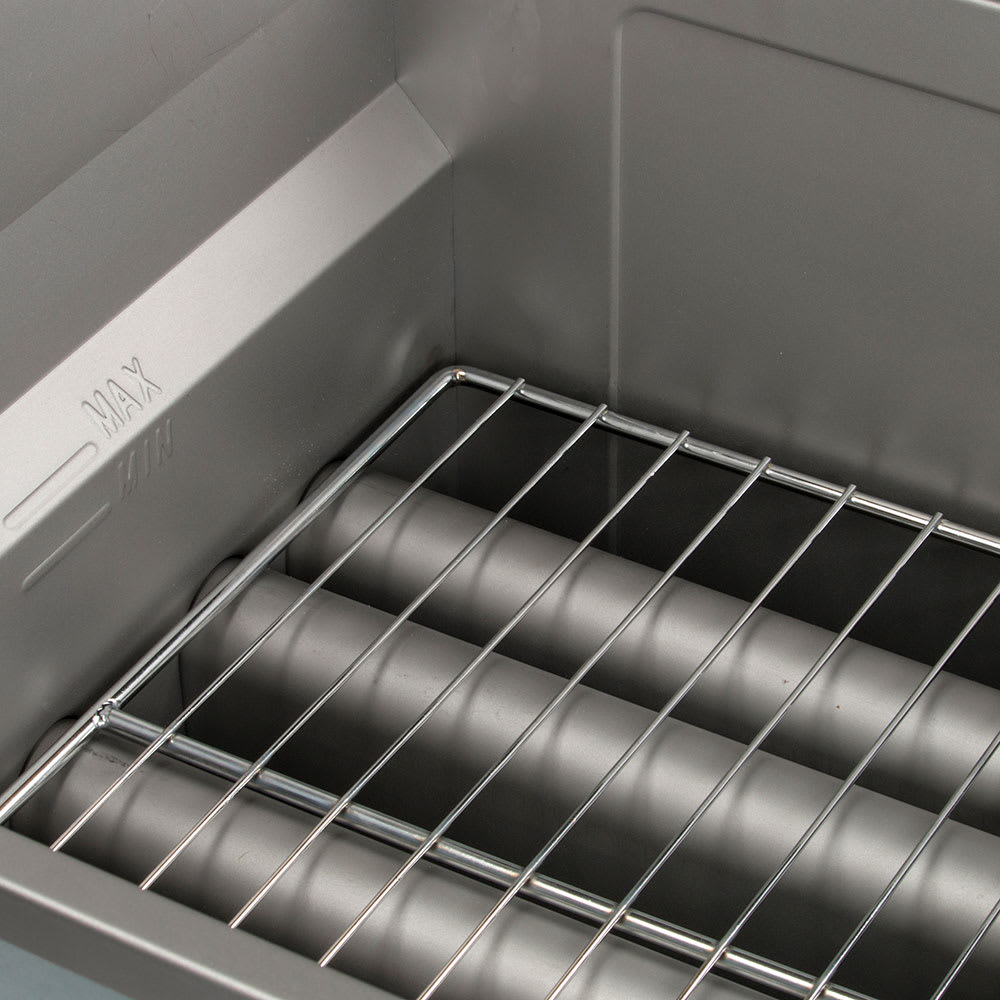 - Mounted on 6-in. stainless steel legs that adjust for uneven floors