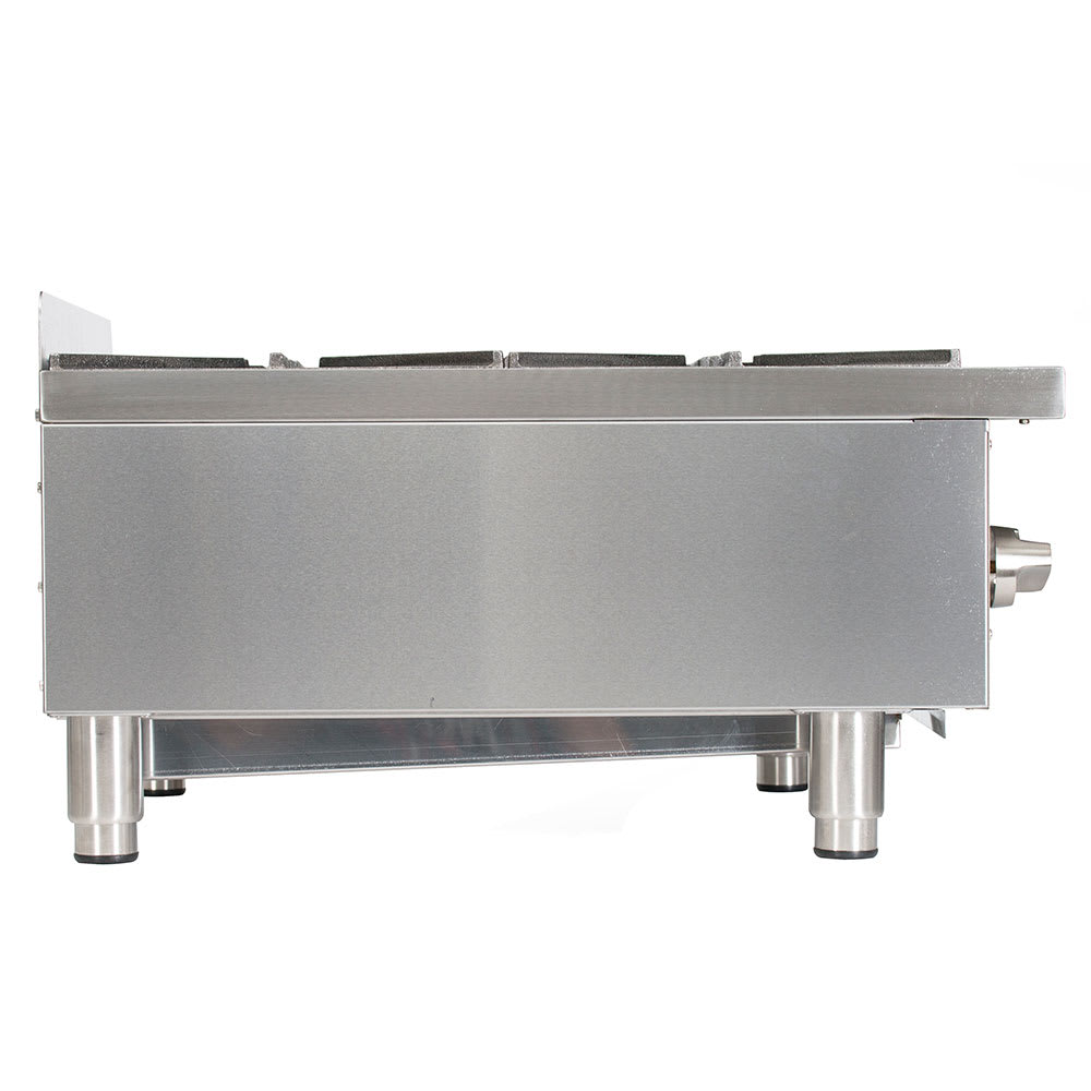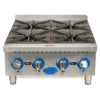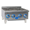 Hot Plate, gas, countertop, (4) 22,000 BTU cast iron burners, stainless steel double wall construction, adjustable pilots with front access, cast iron grates, stainless steel drip pan, 4″ adjustable stainless steel legs, 88,000 BTU, cETLus (unit ships Natural Gas with LP conversion kit included)