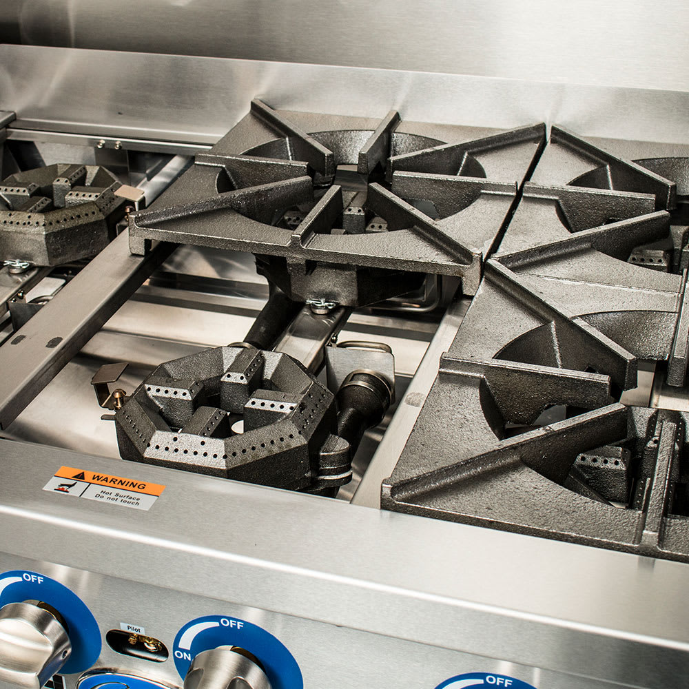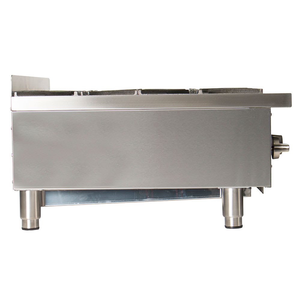 Hot Plate, gas, countertop, (6) 22,000 BTU cast iron burners, stainless steel double wall construction, adjustable pilots with front access, cast iron grates, stainless steel drip pan, 4″ adjustable stainless steel legs, 132,000 BTU, cETLus (unit ships Natural Gas with LP conversion kit included)