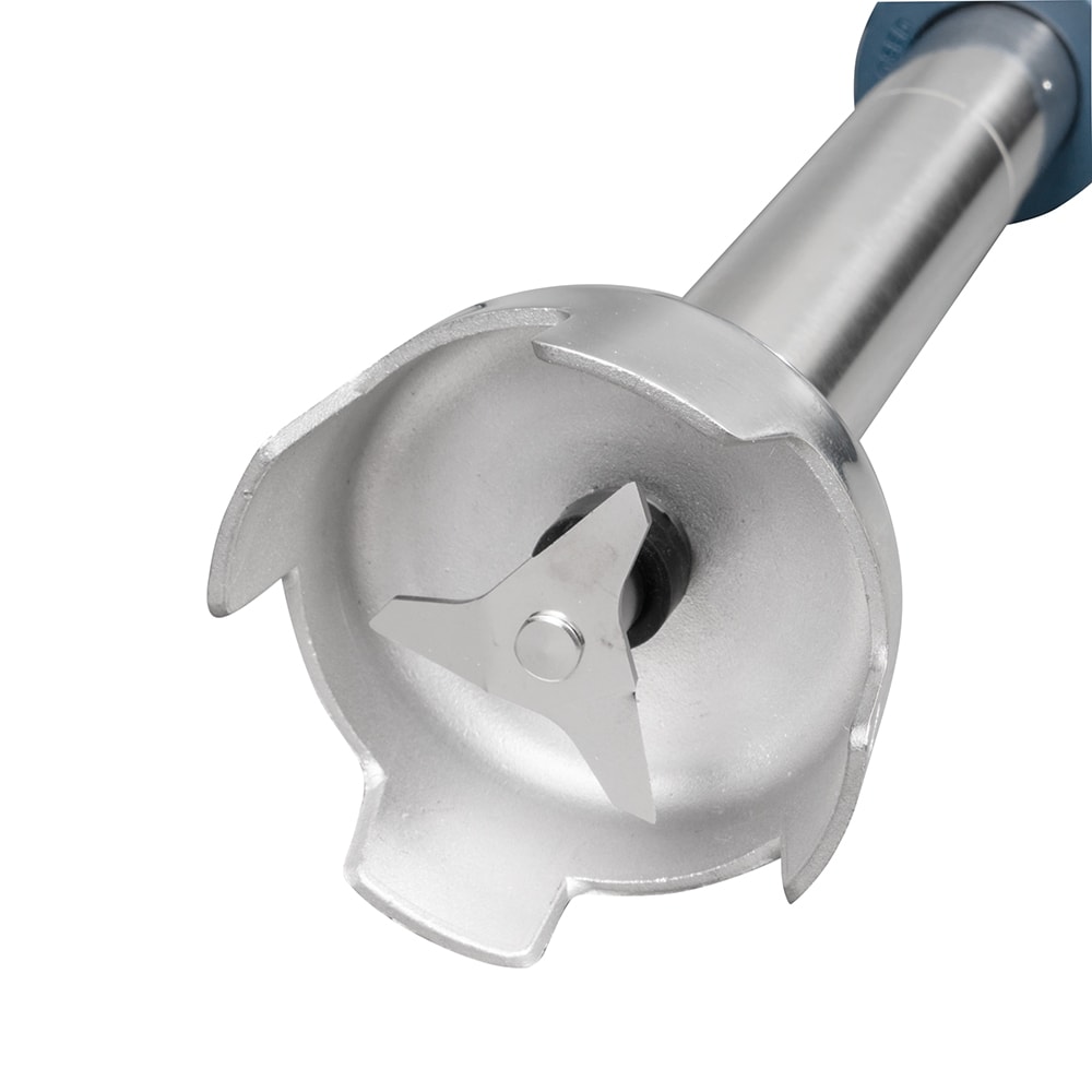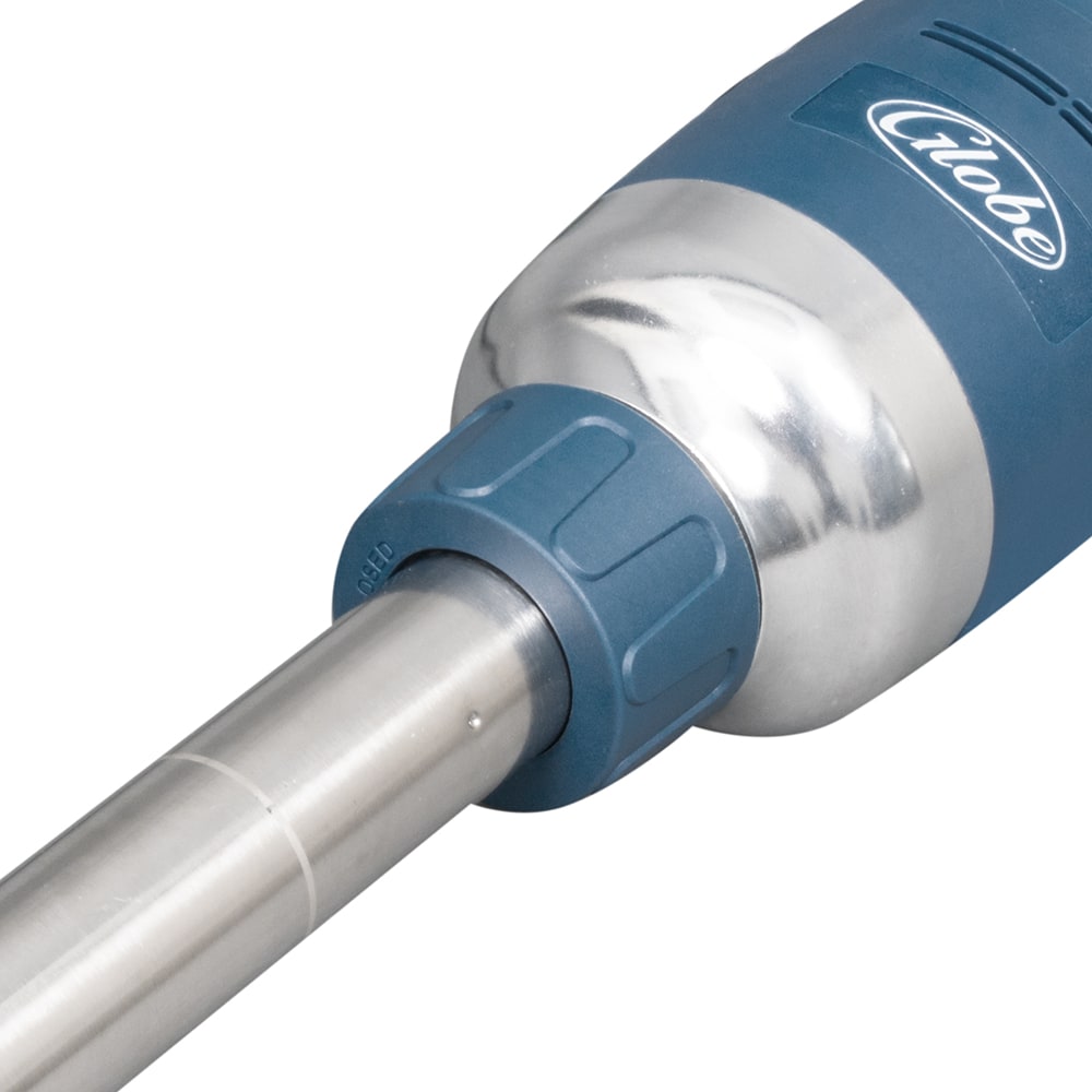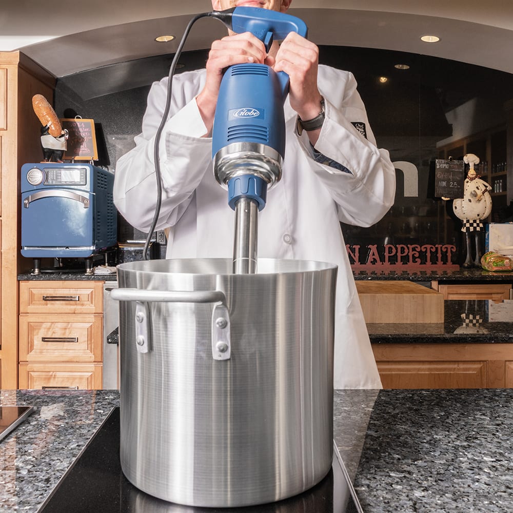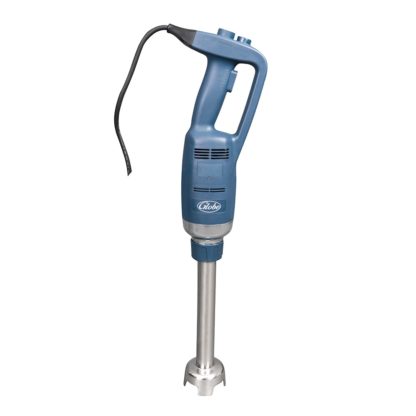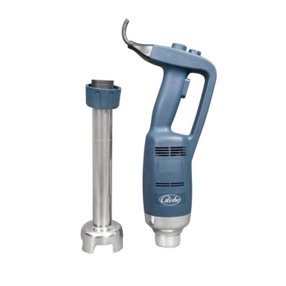 Great for mixing, blending, and pureeing, the Globe GIB750-16 commercial immersion blender has a variable speed motor that can be adjusted to support myriad tasks. Because the motor is heavy duty, it’s powerful enough to support difficult mixing applications. This motor is protected by an overload safety feature and, to protect the operator, the unit has an interlocked power switch. Its shaft is 16 inches long to reach into large pots, so users can mix ingredients directly in the cooking vessel.