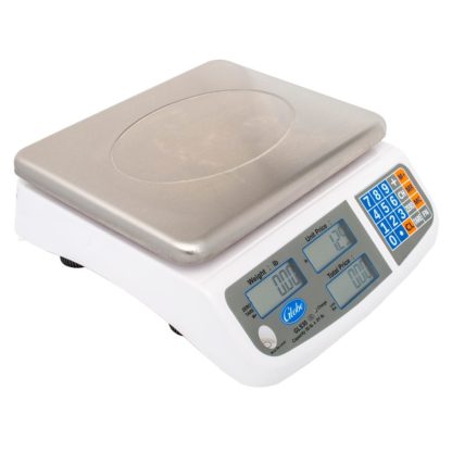 The Globe GLS30 price computing scale weighs product and automatically calculates price based on the reading. Weight, unit price, and total price are shown on the LCD display, and because it has large numbers and a backlit display, it’s clearly visible. A change function can show how much money to return to the customer, and multiple transactions can be calculated, with weighed and unweighed items. Measuring items in precise 0.01-pound increments, this scale has a 30-pound capacity. The weighing platform on this legal for trade scale is made of durable stainless steel and is removable to streamline cleaning. For corrosion and scratch resistance, the body of the unit is made of white ABS plastic.