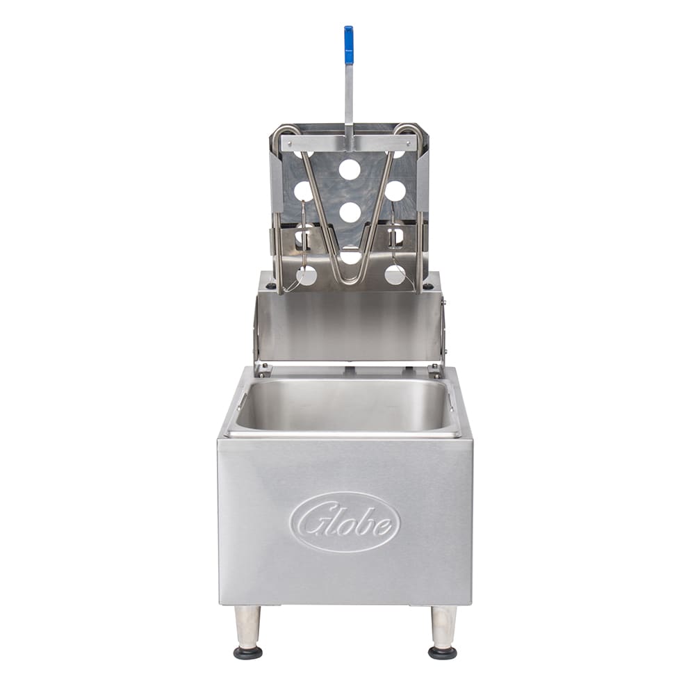 To facilitate thorough cleaning, the Globe PF10E electric fryer is built with swing-up elements and a detachable control box. Its single frypot can also be removed, and it’s equipped with handles that enable operators to lift it up and out comfortably. Each of its two nickel-plated fry baskets are fitted with insulated handles to provide a secure grip and reduce the risk of burns. A compact, countertop model, this unit’s vat has a capacity of 10 pounds.