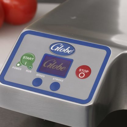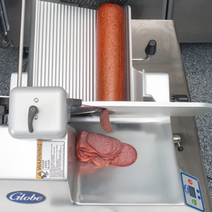 The Globe SG13A slicer is designed for the safety of users and customers. The system has interlocks to keep it from operating if certain protective pieces are missing, resets when power goes out so it won’t restart unexpectedly, and has a covered knife blade. Its self-diagnostic control system prompts users to clean the slicer every four hours and gives alerts when maintenance is needed.